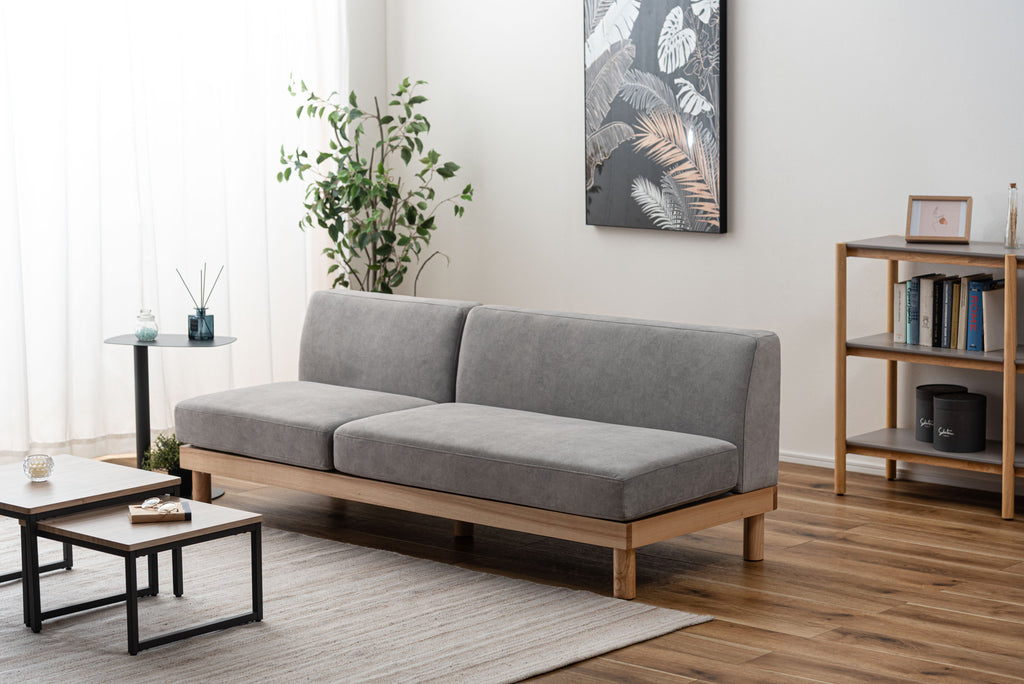木製フレームの堅牢さと程よい硬さのクッションが、しっかりとした座り心地を実現。