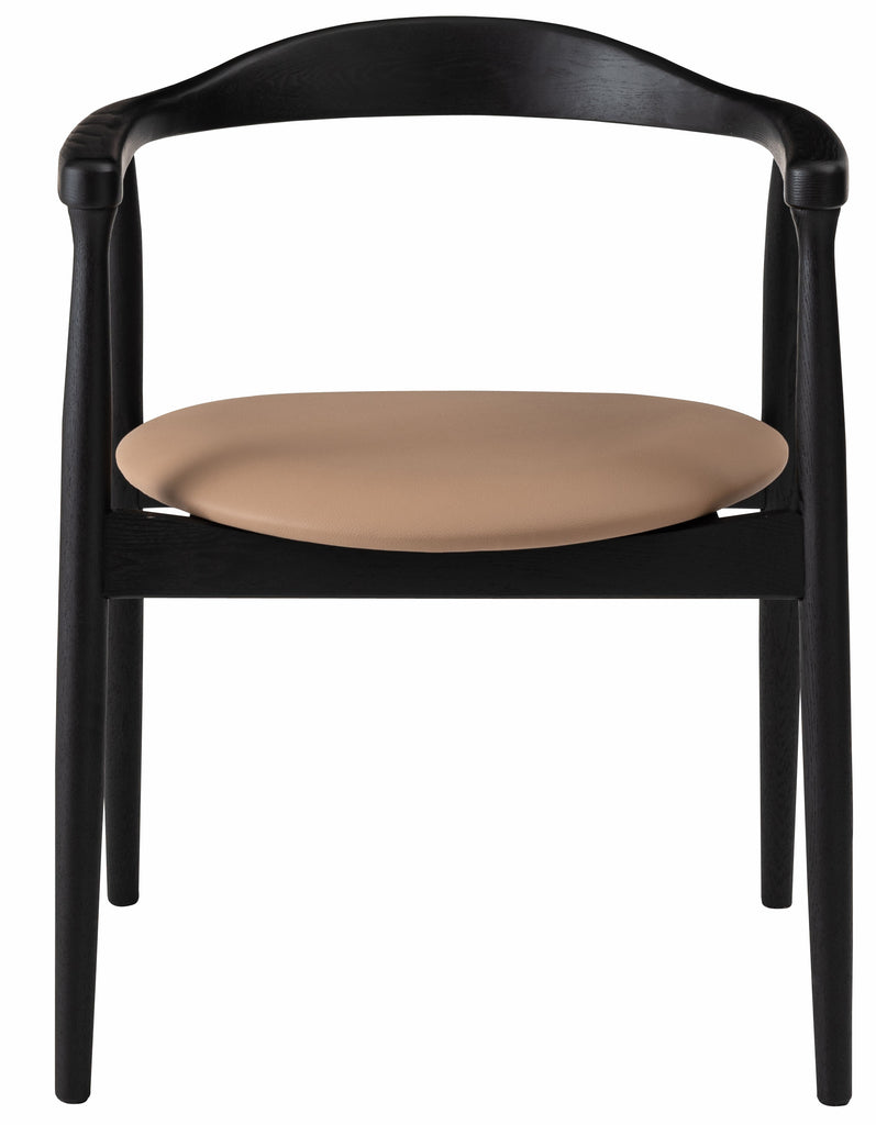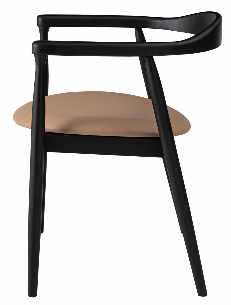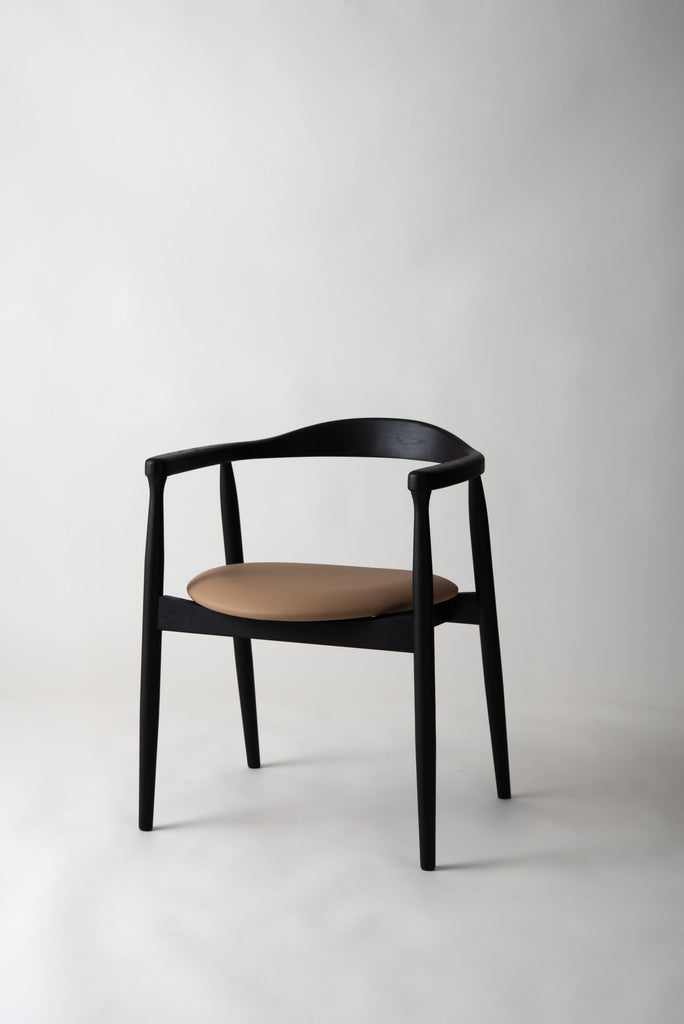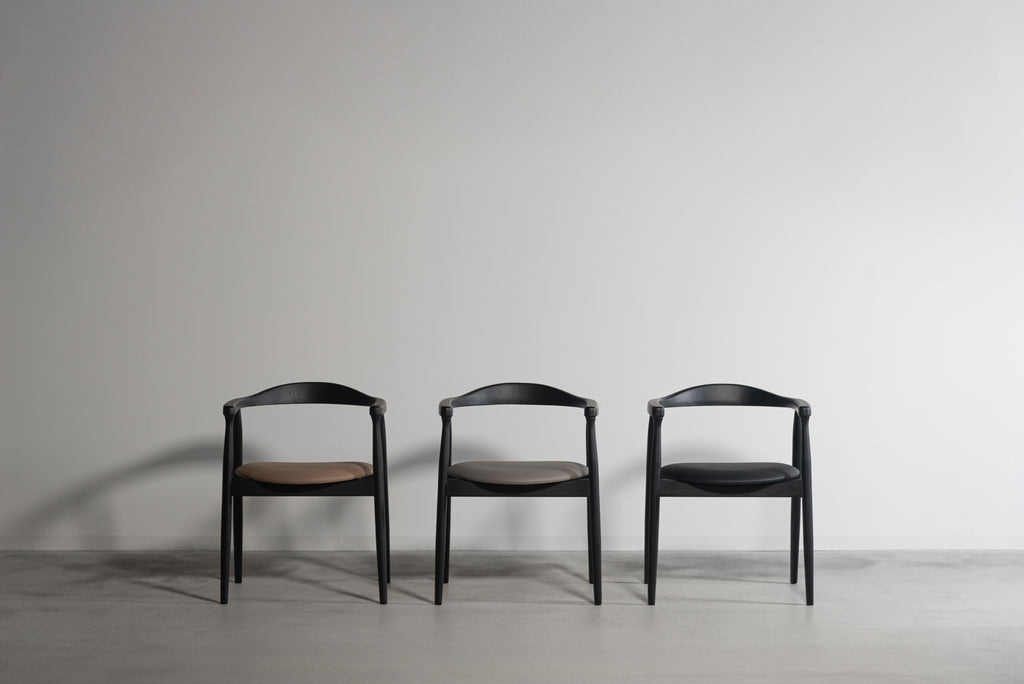 座面にはメンテナンス性に優れた合成皮革を使用。日常使いしやすく、美しさを保ちやすい仕様です。アッシュ材のフレームとのコントラストが美しく、ダイニングやワークスペースにも上品に調和します。機能性とデザイン性を兼ね備えた一脚です。