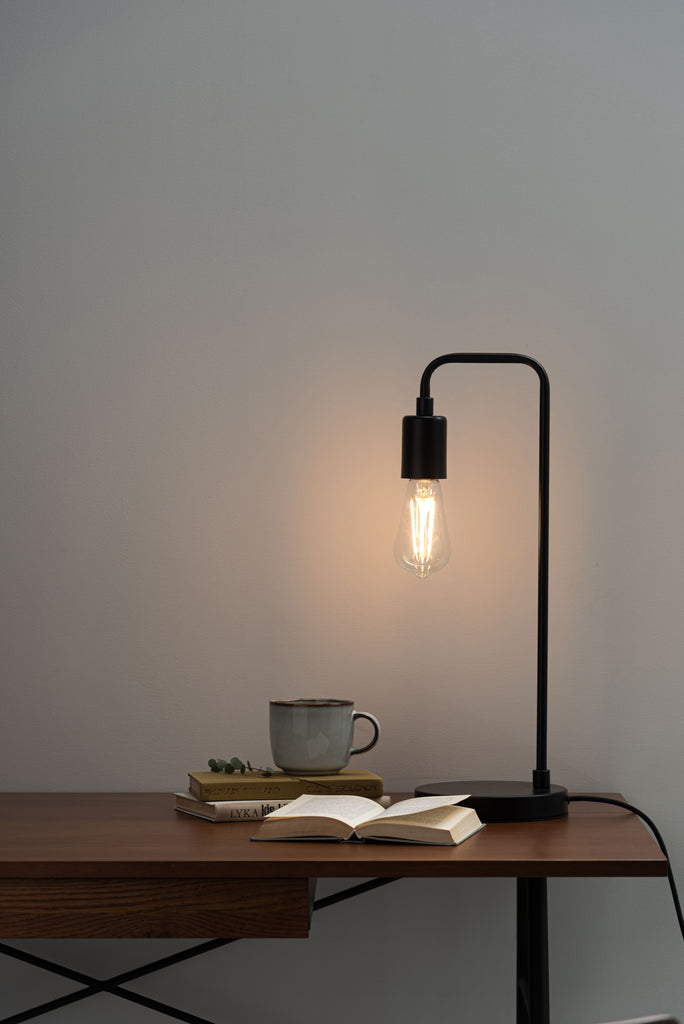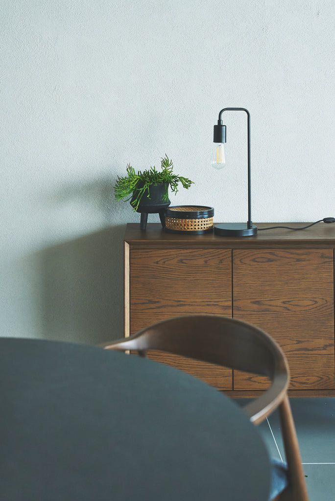 シンプルながらも洗練されたフォルムが魅力のテーブルランプ。細身のアームと丸みを帯びたベースのバランスが美しく、空間に静かな存在感をもたらします。ヴィンテージ感のあるフィラメントLED電球との組み合わせが、レトロとモダンを融合させた雰囲気を演出。