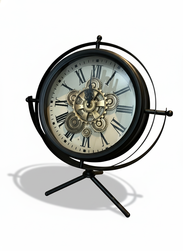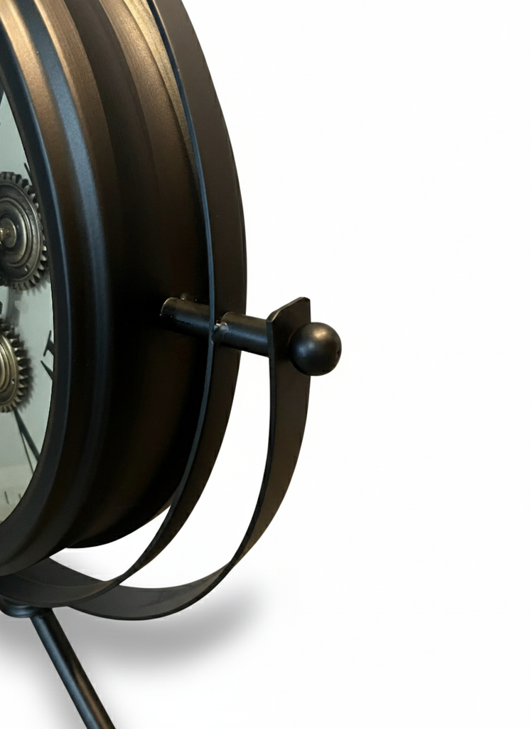 ヴィンテージインダストリアルな世界観を纏う、装飾性の高いテーブルクロックです。