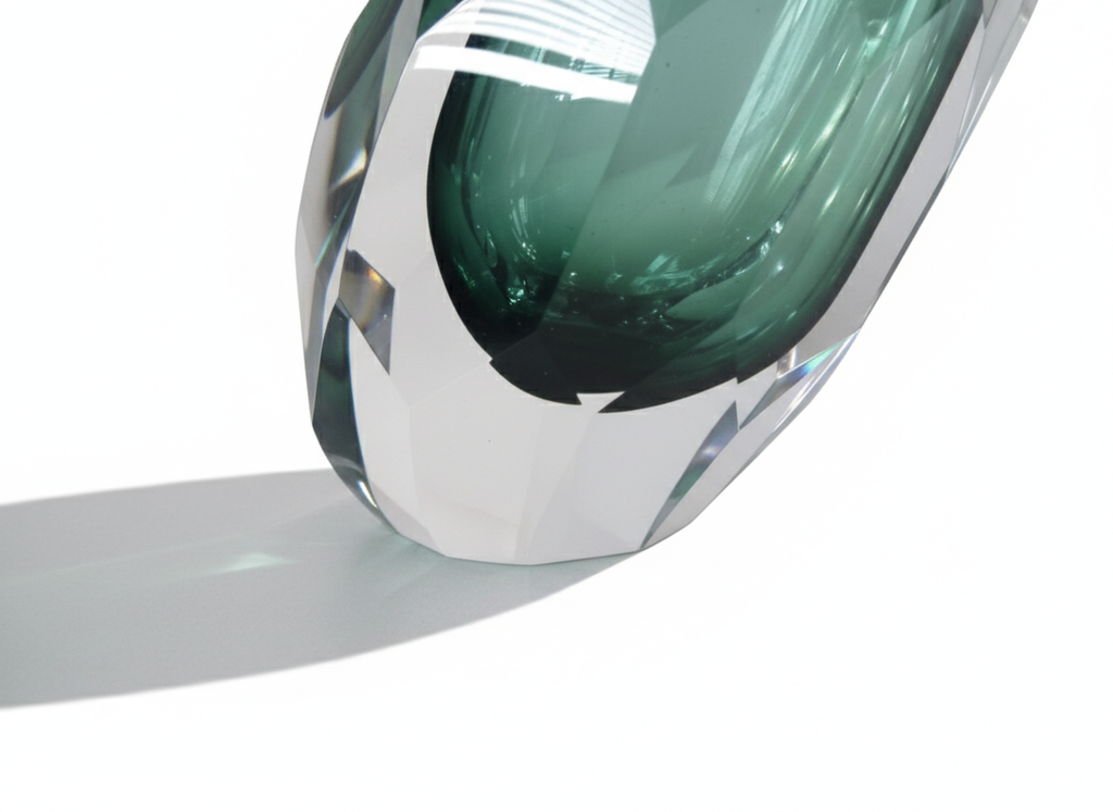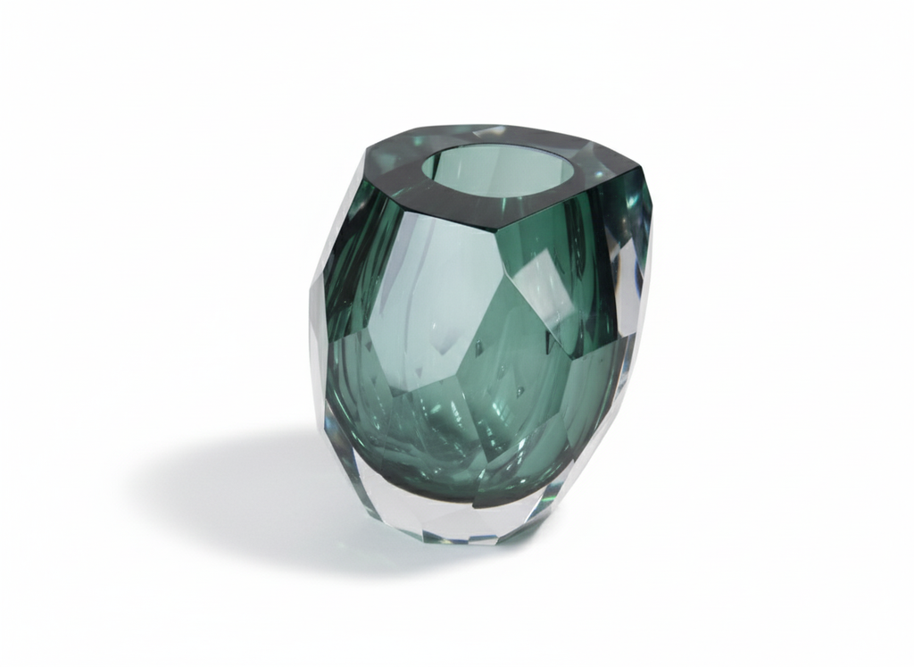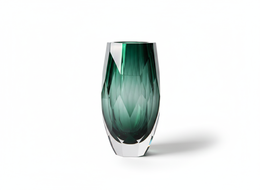 ヴェネツィア・ムラーノガラスの美を現代的に再解釈した、Prism Glass Vase Emerald。