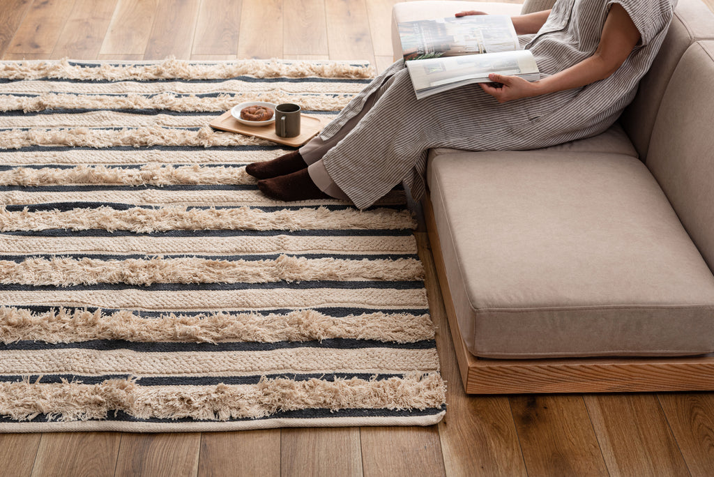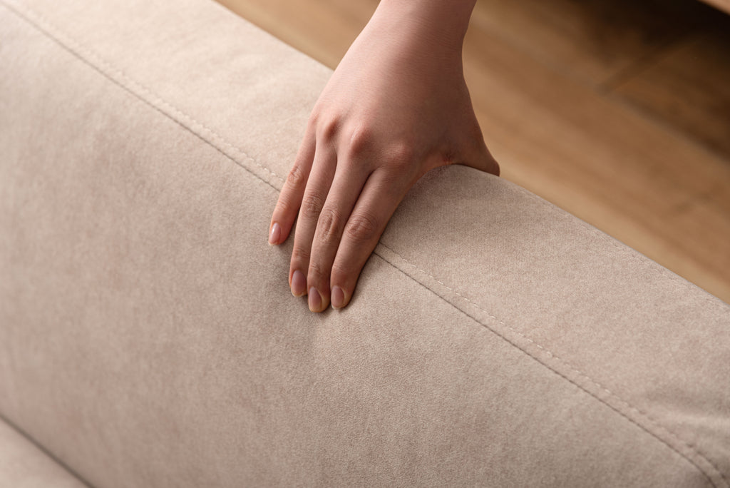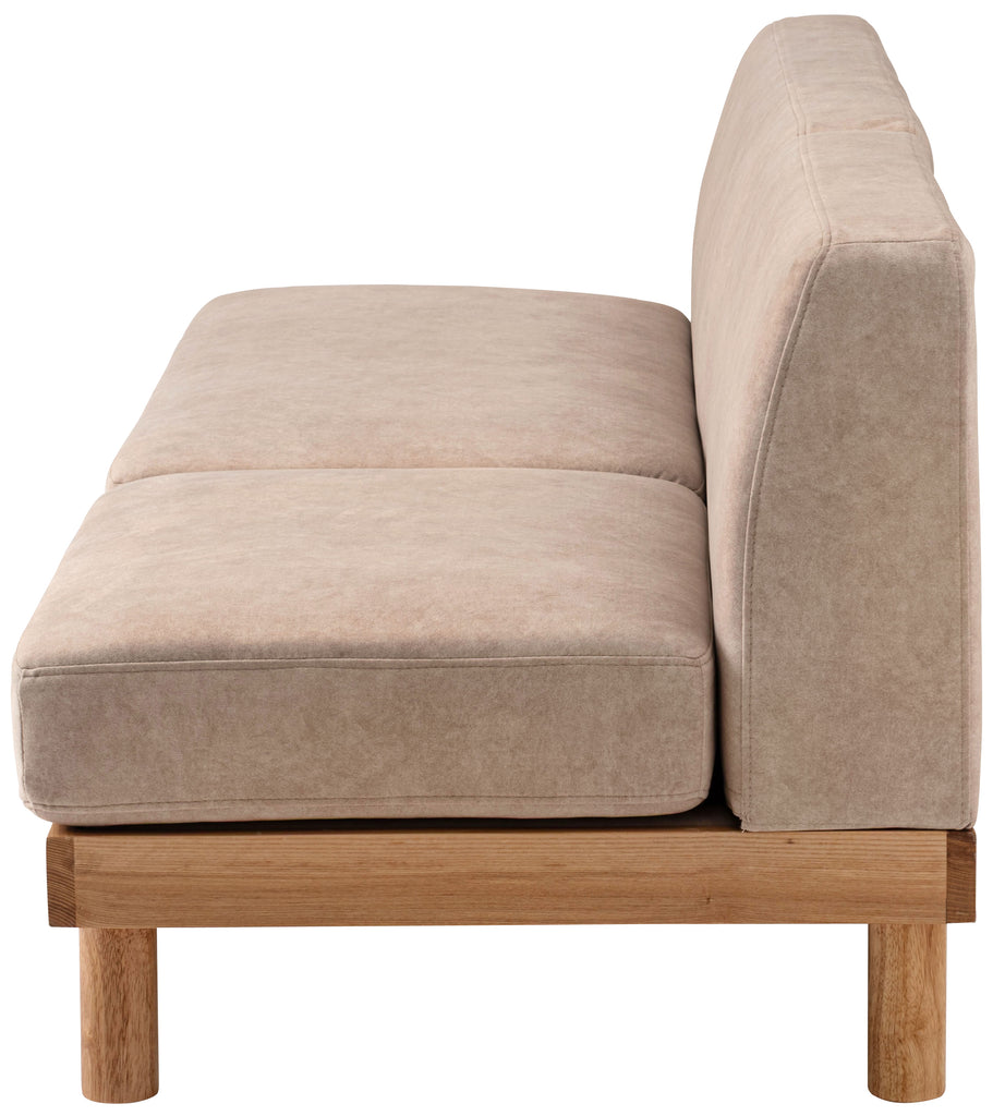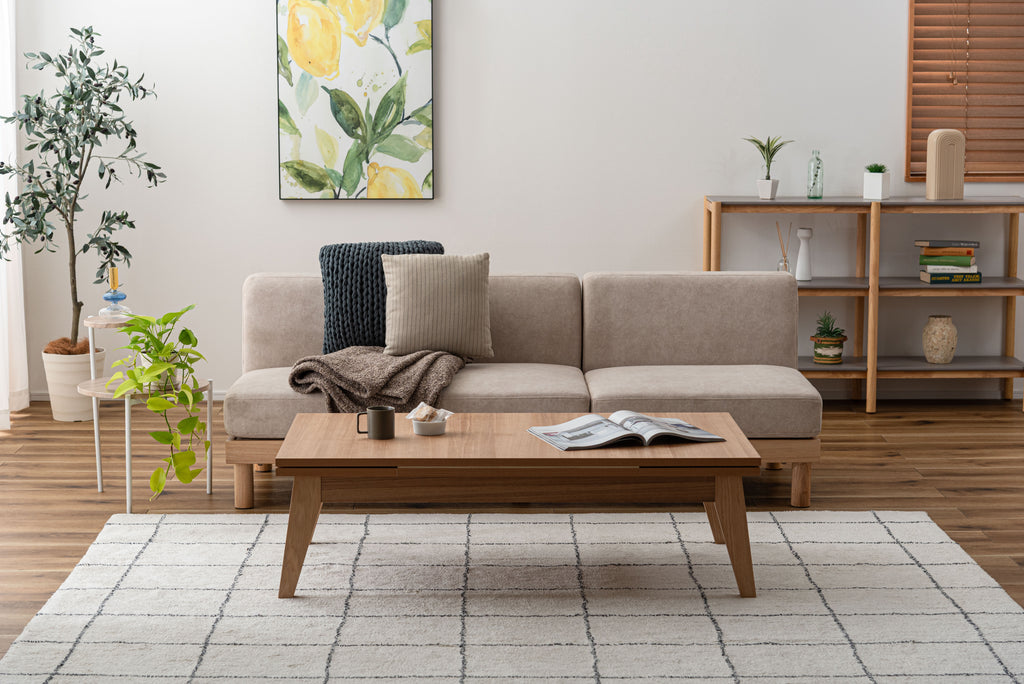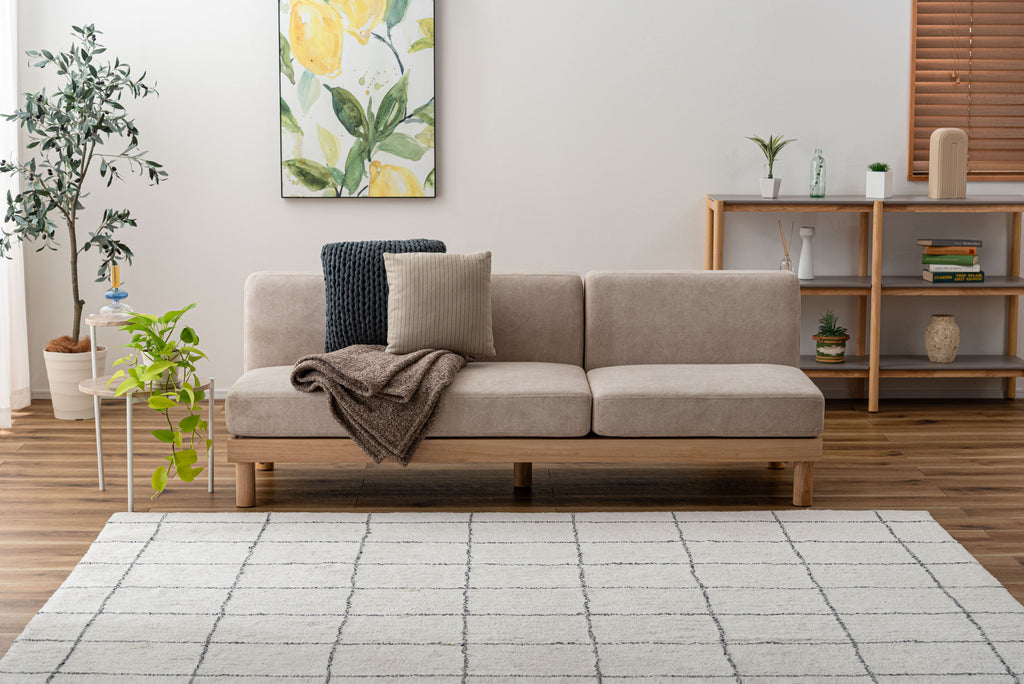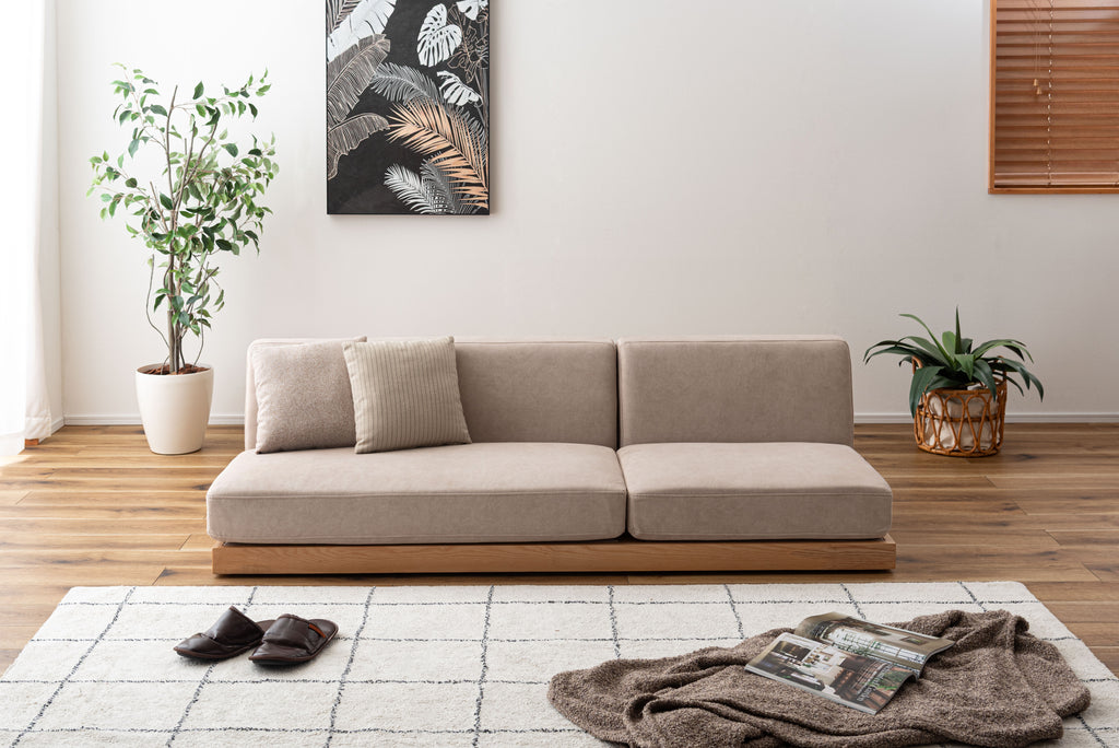 天然木フレームとファブリックの組み合わせが、リラックス感と上質感を両立。