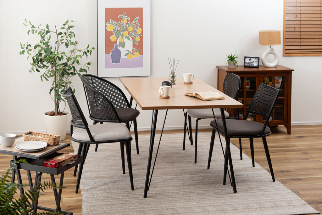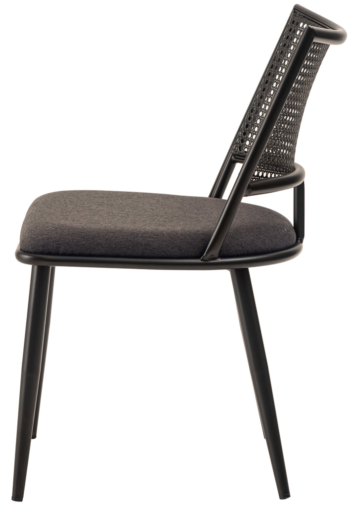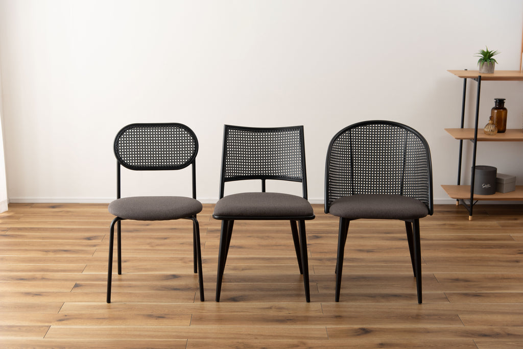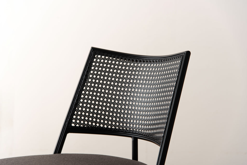 ラタン調デザインの背もたれに、粉体塗装を施したスチールフレームを組み合わせた「Curve Rattan Chair」。