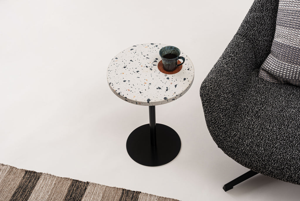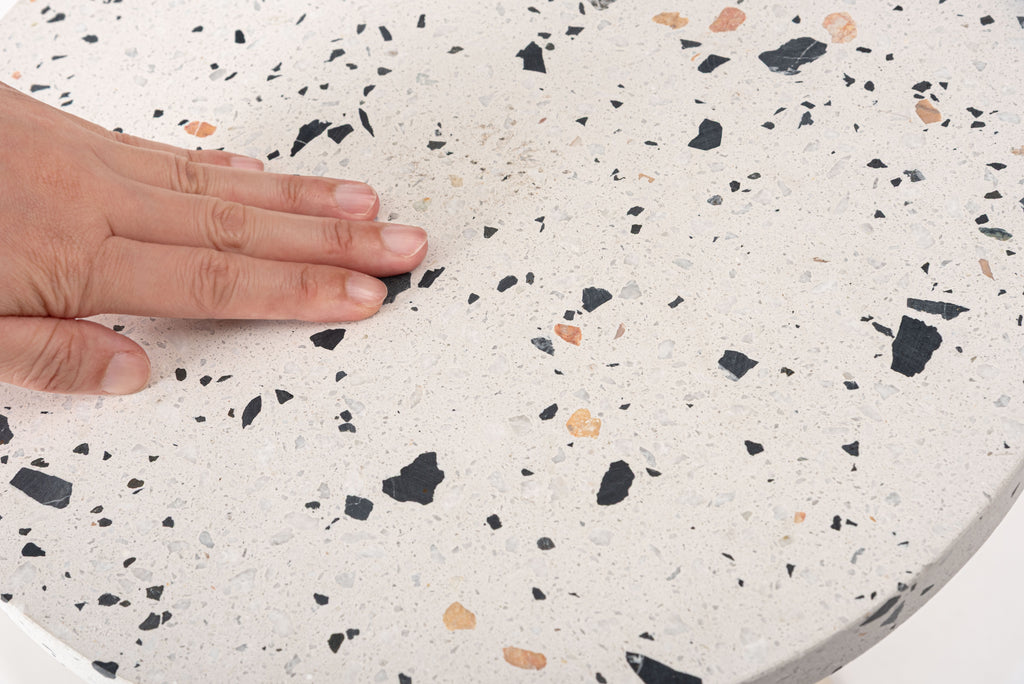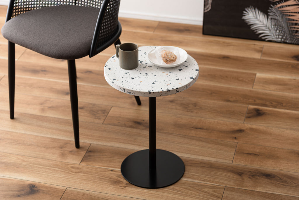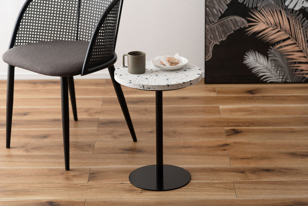 人造大理石(テラゾー)の独特な模様がランダムな表情を生み出し、空間に個性と深みを添えます。
