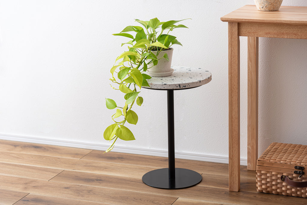 サイドテーブルとしてはもちろん、グリーンスタンドとして観葉植物を置いても映えるデザイン。