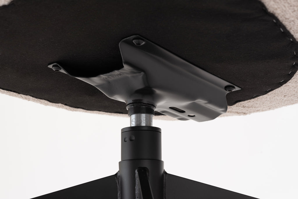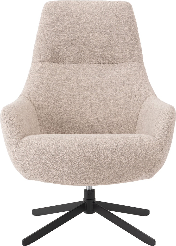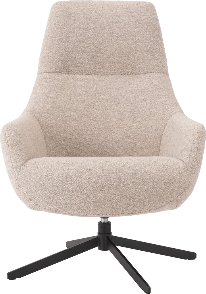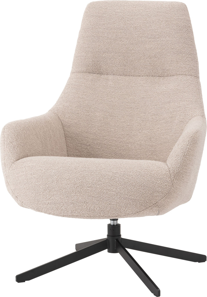 しっかりとしたハイバック仕様で長時間座っても快適。シンプルながらも印象的なデザインは、包み込まれるような心地よさを追求し、柔らかな曲線が身体をやさしく支えます。座面には360度回転機能を備え、限られたスペースでもスムーズな立ち座りが可能。デザイン性と機能性を両立し、ラウンジやオフィス空間にも上品に調和します。