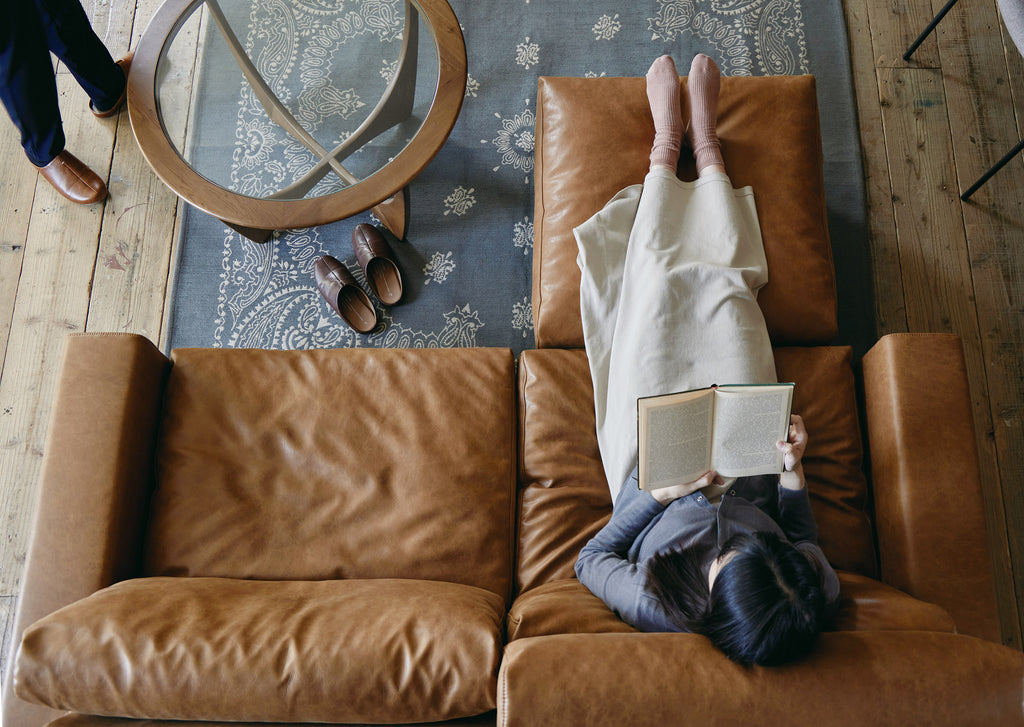 広めに設計された座面は、オットマンとして足を伸ばしたり、簡易的な座席として使用したりと、ライフスタイルに合わせて柔軟に活躍。リビングに自然と馴染みながら、使い方の幅を広げてくれます。