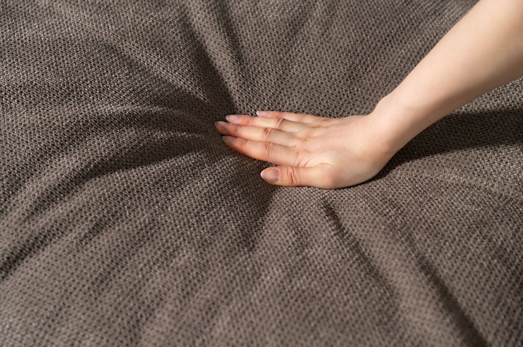 フレームのナチュラルな木目とテキスタイルのコントラストが美しく、インテリアに自然と溶け込むデザイン。